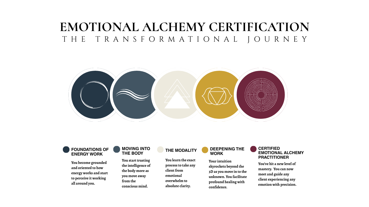 “I truly feel I was meant for this. I’m developing the skills, building the muscles, and honing the healer’s craft. This certification is changing me.” - Emotional Alchemy Certification Student